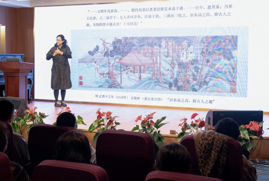 “中国茶的审美高峰在宋代,包括器皿和整个过程的审美非常高雅。但是中国茶最终完成文化属性、形成中国文化,让它变成文人雅士生活当中的一部分,变成人格养成、性灵抒发的过程,其实是在明代完成的。这也是中国茶文化重大的转向。”前不久,华东师范大学民俗学研究所张海岚博士亮相沪上行知读书会,从文徵明笔下《惠山茶会图》讲起,带读者探索明代茶人集团的饮茶追求,探寻背后传统文化与中式审美的演变。