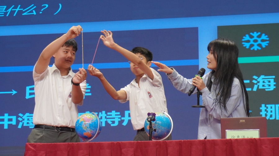 国家教材建设重点研究基地(中小学地理教材研究)主任、华东师范大学地理科学学院段玉山面向澳门中学生开展题为《像科学家一样看世界》的专题讲座。讲座以地理学家精神为引领,结合现实生活中的丰富案例具体阐释地理学综合性、区域性和实践性的特征,勉励青少年应像科学家一样,全面、系统、发展地看世界。华东师范大学地理科学学院师生还走进澳门蔡高中学,开展“地球说”地理科普进校园活动。学生代表徐惠泽、刘思彤分别围绕极地航道与“北斗”导航卫星讲授科普课程,引导学生从科学视角理解地理现象,激发探究兴趣。