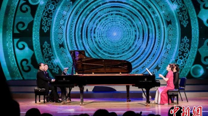 从《关雎》到《凤求凰》,从《阳关三叠》到《大江东去》,从《声声慢》到《春花秋月何时了》再到《忆秦娥恒山月》……多位身着不同朝代服饰的歌唱家在“上海之春”舞台上,用美声演绎古诗词之美,在露华春韵中,一股清新而不失庄重的气息扑面而来。歌唱家们在“上海之春”国际音乐节上用美声演绎中国诗词。(张应征摄) 刚刚成功在“上海之春”国际音乐节——《露华春韵古诗词艺术歌曲音乐会》演出的旅德女高音歌唱家、华...